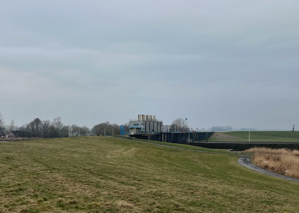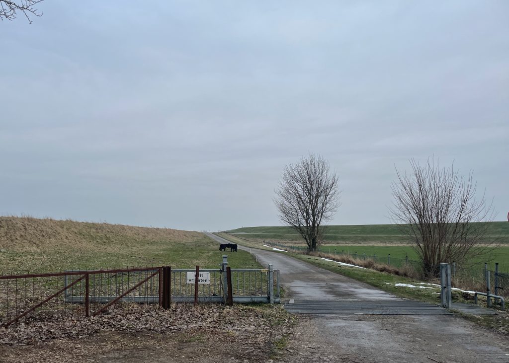 Vanaf Nieuwe Statenzijl 10 kilometer langs de Dollarddijk met de wind in de rug. Bij de sluis stond dat de weg aan de buitenzijde van de dijk was afgesloten, dus binnendijks gefietst 10 kilometer met allen af en toe een veedoorgang.