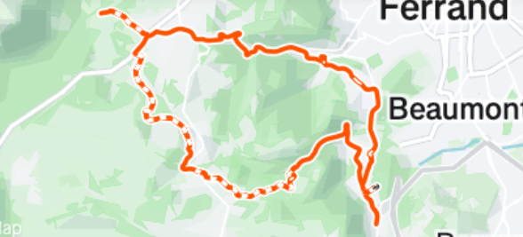 Vandaag een rustdag. Alleen een tochtje naar de Puy de Dôme en terug. Op de heenweg over een gravelroute. Terug over de verharde weg. Alleen waren een aantal kilometers van de terugweg, omlaag, Route Barree, ook voor cyclistes. Op deze zaterdag de gok maar genomen. Geen glad wegdek, veel asfaltwerkzaamheden, maar voor mijn Worldtraveller goed te doen. Op de heenweg was er ook al een stukje Route Barree, daar lag grof grind in afwachting van asfaltering. De dunne banden fietsers liepen daar, de Worldtraveller reed er over heen. Alleen op een bospad, glad, geulen, los grind en +10% omhoog moest ik ook lopen. Blij dat ik niet zwaar bepakt was.
