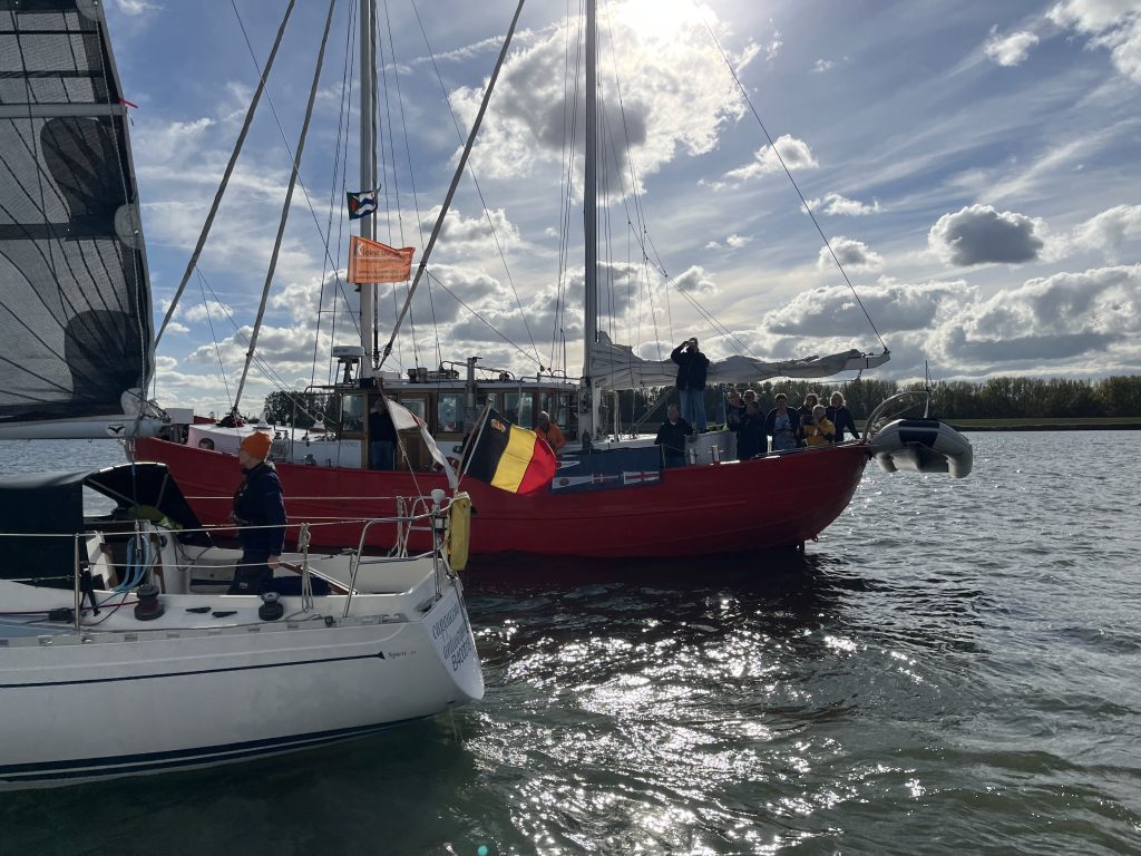 Om 12.30 de start van de trimarans. Die kunnen veel sneller en krijgen langere opdrachten. Om 12.45 dan de start voor de singlehanded bootjes. Met seinvlaggetjes moet je een code ontcijferen en daarmee open je een etui met daarin de opdracht. Geen hele grote verrassingen: Lemmer, Enkhuizen, Medemblik, Den Helder, Terschelling en Hoorn. En een ronde om een grote zandplaat bij Terschelling. Grapje is verder dat je via dezelfde sluis naar/van het Markermeer moet. Dat scheelt een slok op een borrel.