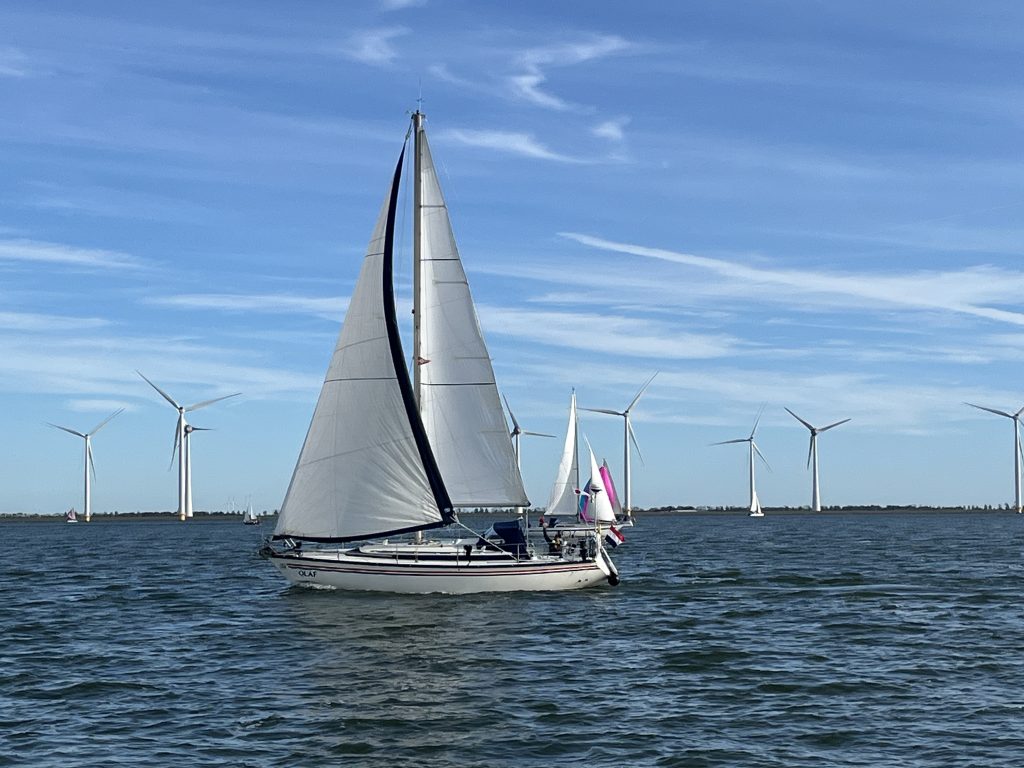 De tocht naar Lemmer verliep rustig. Mooi zonnig weer, lekker windje. Vlak voor de haven van Lemmer nog een slagje gemaakt. Bij de altijd vriendelijke sluiswachters een selfie gemaakt, daarna snel door naar Lemmer. In de haven nog even vastgelopen, zat te lang met de schoot van mijn genaker te klooien. Dat schoot eerst niet hard op. Met een zachte wind van achteren. Die trok later aan. De genaker vond dat niet fijn, dus die verwisseld met de fok. De schoten deze keer goed opgeborgen. Na het ronden van het Vrouwenzand een mooie halve wind naar Makkum. De wind kwam pal van voren, de geul bleek iets smaller dan ik op de kaart meende te zien. Dus weer vastgelopen, met de motor weer los.