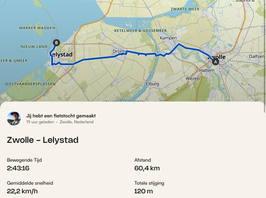 En voor mij persoonlijk een mooie bonus: er is nu een extra oversteek over het Drontermeer, tussen Roggebotsluis en Elburg. Dat maakt de route niet alleen handiger, maar ook extra leuk. Soms pakt een aangepast plan gewoon verrassend goed uit!